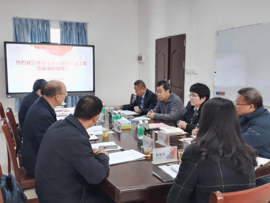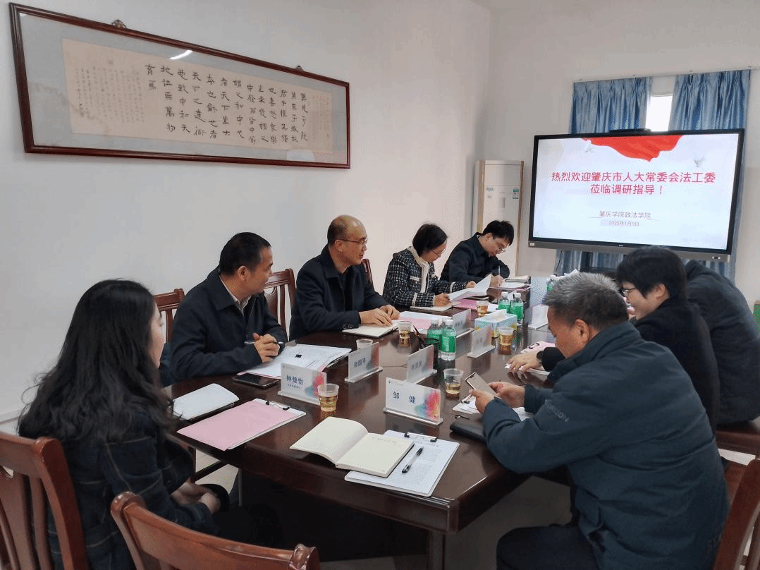 2025年1月9日上午,肇庆市人大常委会法工委主任林金汉到TapTap点点调研市立法基地工作情况,参加调研的还有副主任刘舒曼、法规科科长张凯翔、备案审查科科长郑国平。TapTap点点党委书记张滔华、院长许英、市地方立法基地主任祁建平、副主任李贤庚、邹健老师、法学专业负责人钟楚怡参加座谈会。会议由院长许英主持。