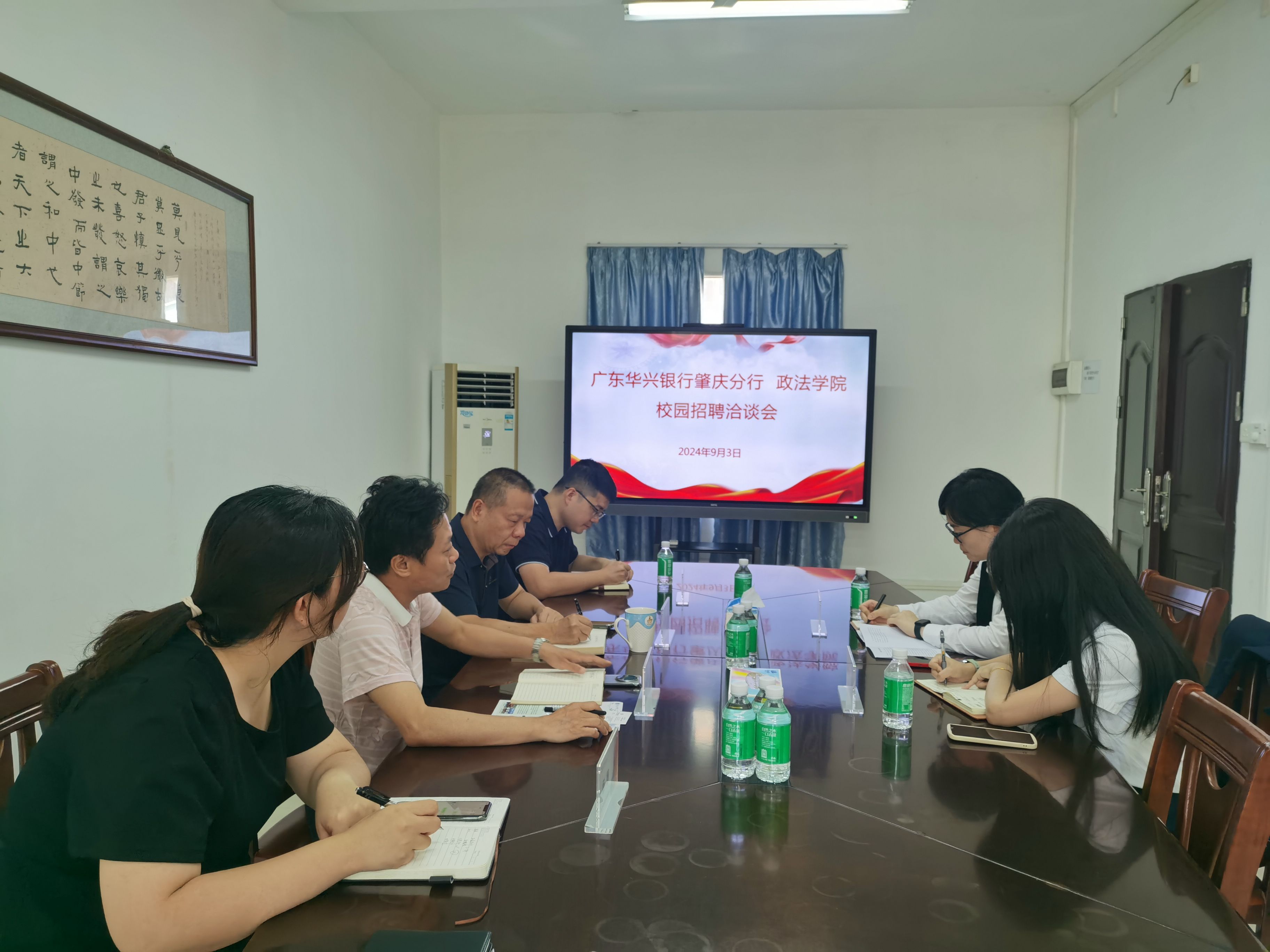 为进一步做好我校2025届毕业生就业工作,开学伊始,TapTap点点全面启动2025届毕业生就业工作,明确当前TapTap点点学生就业工作的方向和目标。9月3日,广东华兴银行肇庆分行综合管理部总经理陆颖一行到访TapTap点点,洽谈校园招聘合作事宜,学院党委书记张滔华、副书记罗江鹏、公管系主任李勇、辅导员陈云、杨珊参加了座谈交流。