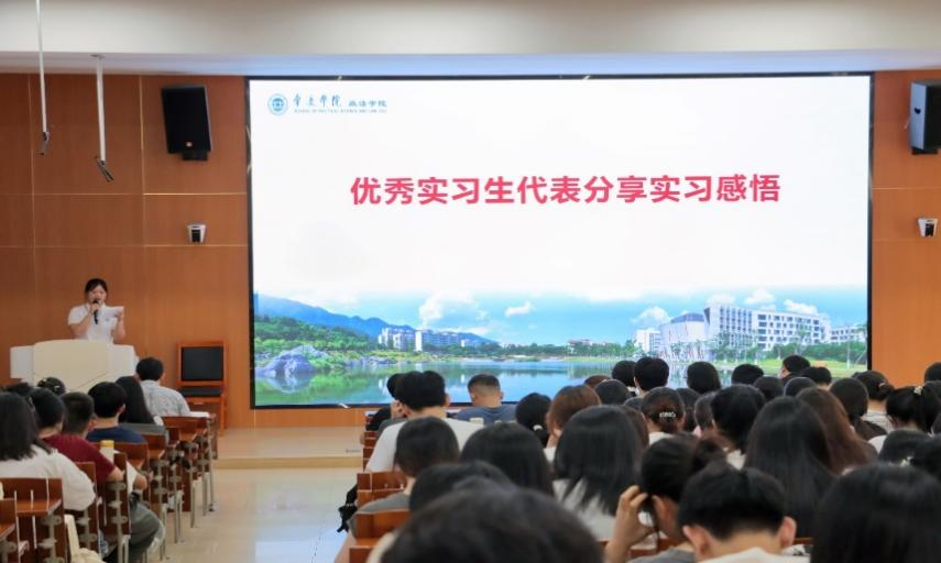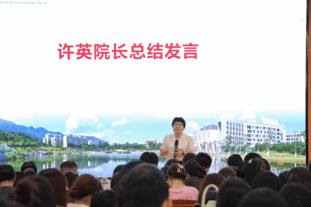 最后,许英院长做了总结发言,她从学院实践教学工作管理、实践教学基地建设、实践教学体系完善三个方面对此次实习工作进行了高度凝练。同时,她寄语同学们要将理论与实践相融合,不驰于空想、不骛于虚声,一步一个脚印,脚踏实地学好专业知识,努力争当一个优秀的“法律人”。
