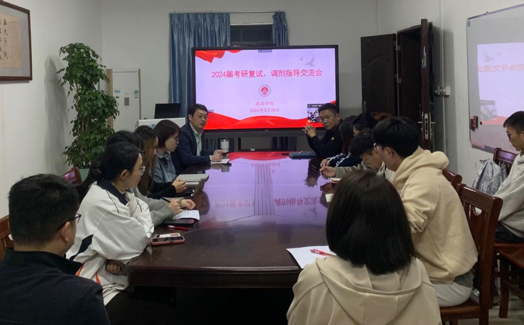 学院领导和老师从复试政策的解读和复试流程、复试注意事项三个方面进行指导,建议考研同学:一是要重视复试环节的复习,巩固好专业基础知识;二是要了解报考院校的复试流程及所需准备的材料;三是要注重礼仪礼貌,掌握面试的沟通技巧。此外,还介绍了近几年考研复试分数线的变化情况及法学专业、知识产权专业、行政管理专业近几年考研的数据和录取情况,鼓励大家及时调整心态、认真对待复试。