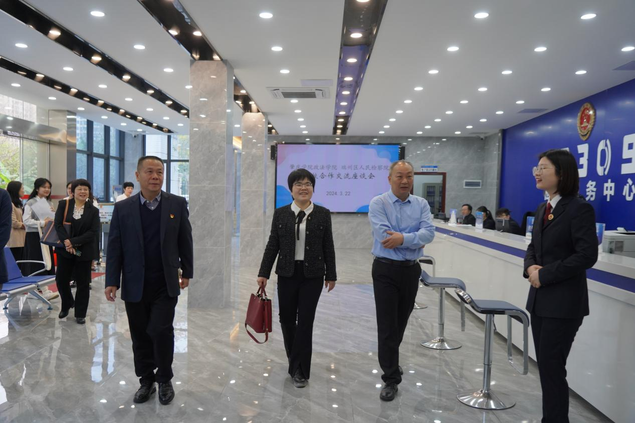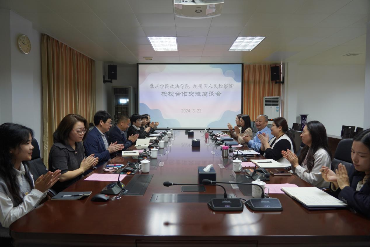 在随后召开的校检合作交流座谈会上,端州区人民检察院领导介绍了检察机关“四大检察”“十大业务”并行的检察监督办案格局,总结回顾了和学院以“师徒结队”模式开展的校检合作、一对一实践教学、检察官进校园、师生同台竞赛等方式培养专业法律人才的情况。李立检察长表示,希望双方能够形成常态化、规范化的交流合作机制,共同推动检察实务与理论研究双融双促。