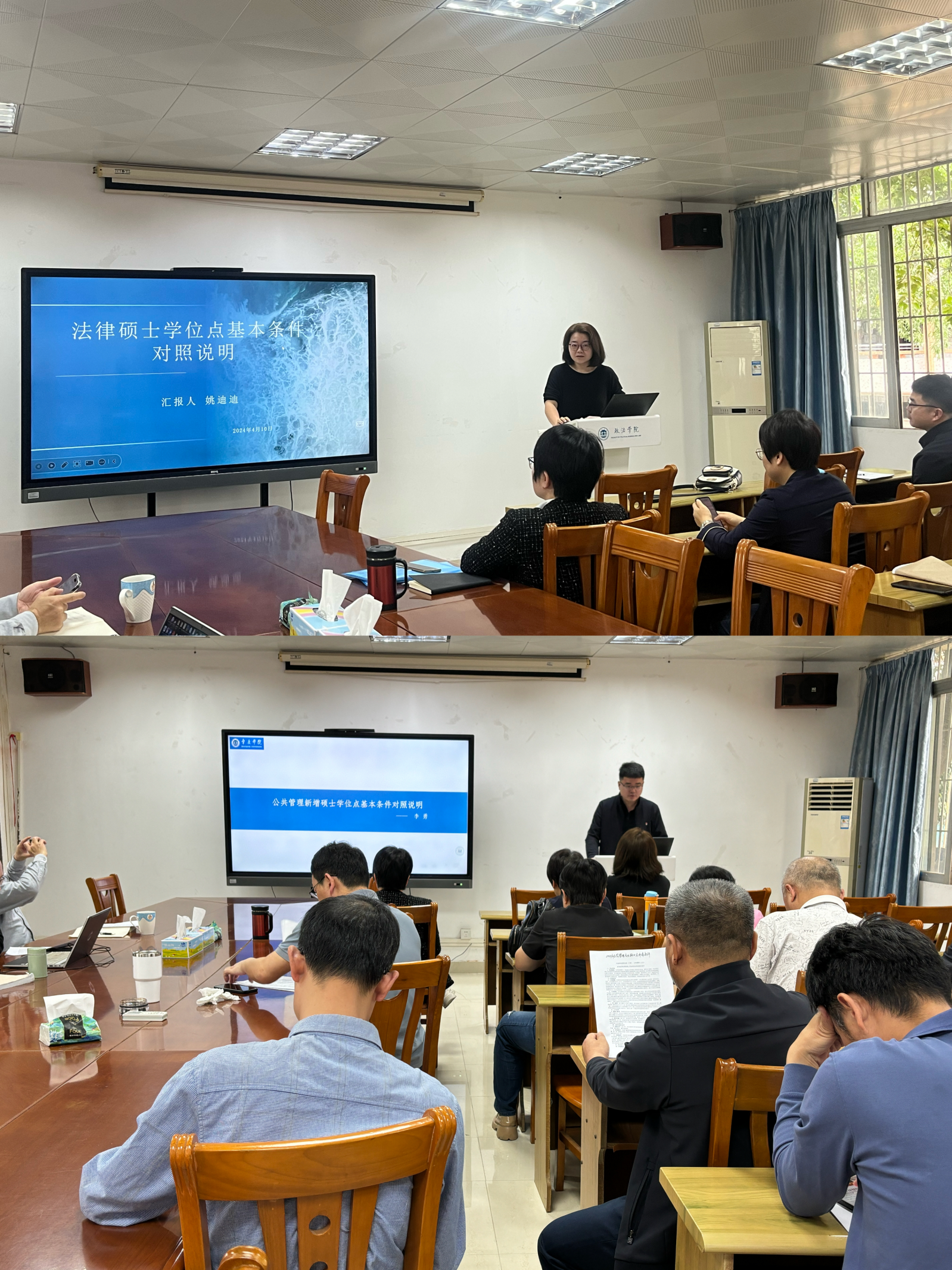 对照《新增博士硕士学位授权审核申请基本条件(2024年)》,姚迪迪博士、李勇博士分别从专业特色、师资队伍、人才培养、培养环境与条件四个方面介绍了法律硕士和公共管理硕士学位授权点申请基本条件,分析了学院目前关于各项条件的达标情况,分别指出了拟申报两个学位点现存短板,并提出建设措施的初步方案。