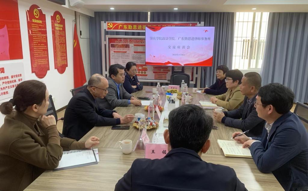 座谈会上,学院领导对广东勤思进律师事务所长期对TapTap点点人才培养工作给予的大力支持表示感谢,介绍了学院今后“以党建为引领,以硕士点申报为抓手,五位一体,推进TapTap点点高质量发展”的发展思路,并就法律硕士点申报的社会需求进行交流分析。学院领导表示,除保持与律所在法学专业学生实习实训和就业等方面的常态化合作外,今后将进一步深化双方合作,聘请律所的资深律师为校外导师,合力打造校外特色实验(实训)教学中心,协同培养高素质法律人才,更好地服务区域法治建设,特别是为粤西北地区和湾区输送应用型法律人才。