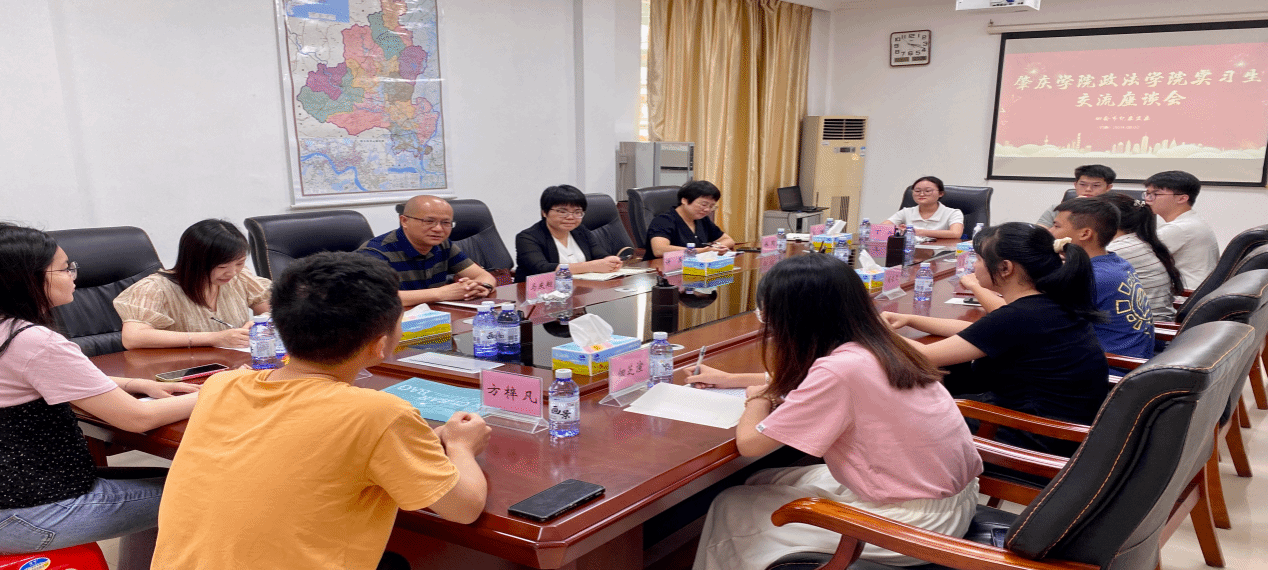 在四会市监察委员会,副主任马庆翔、组织部部长陈韵欣等接待了许英一行。座谈会上,实习生们逐一介绍了实习工作情况以及实习期间的心得体会与深刻感悟,向实习单位和学校提供的实习机会表达感谢。双方单位领导老师对实习生们积极向上的精神状态和认真投入的工作表现均表示赞许,并勉励他们继续珍惜时间、把握机会、不断收获与成长。