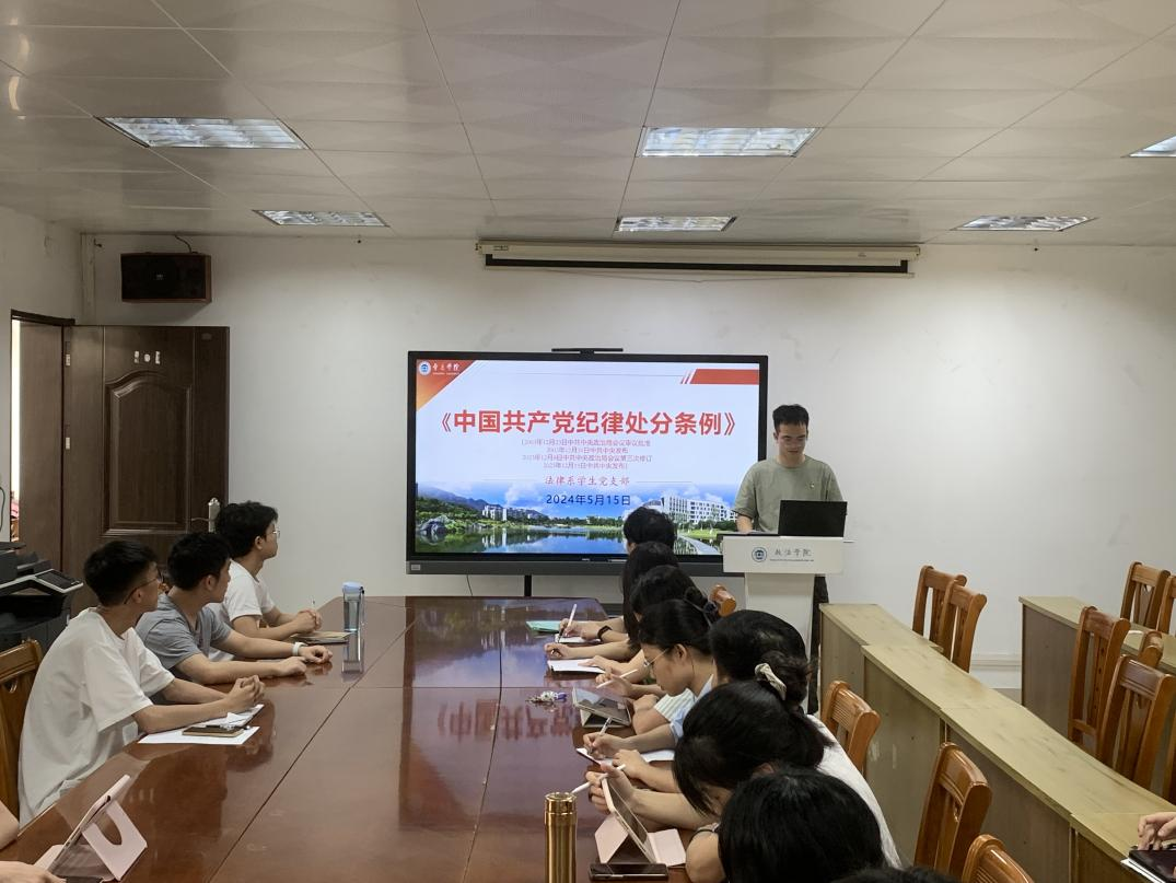 法律系教师党支部召开专题会议,认真学习贯彻习近平总书记关于党纪学习教育的重要讲话和重要指示精神,传达党中央关于党纪学习教育的重要部署以及学院党委相关要求,对党支部开展党纪学习教育进行全面部署,并结合主题党日开展党纪学习教育专题学习研讨。支部委员林尤鹏带领大家认真学习了《条例》第一、二章,并带头交流研讨。