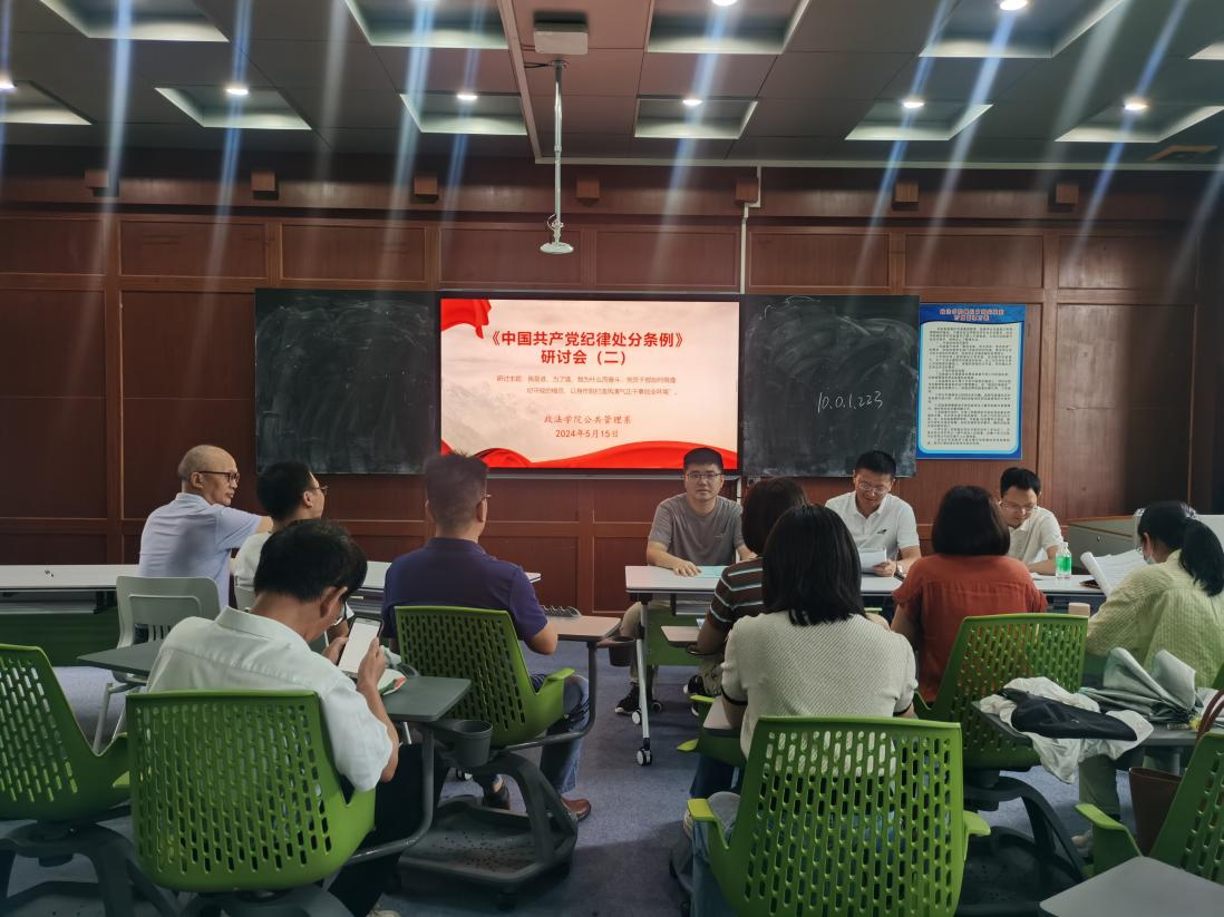 公管系学生党支部召开党纪学习教育动员部署会并开展集中学习,深入学习贯彻习近平总书记关于加强党的纪律教育的重要论述,安排部署支部党纪学习教育工作,并集中学习《中国共产党纪律处分条例》第一章至第三章内容。会议由支部书记连梦怡主持,支部全体党员、入党积极分子参加。
