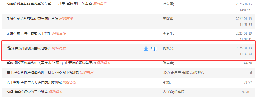 TapTap点点公管系何凯文博士在核心期刊《系统科学学报》2025年1期发表论文《“道法自然”的系统生成论解析》(现处于网络首发)。《系统科学学报》现为北大核心期刊和CSSCI来源期刊。