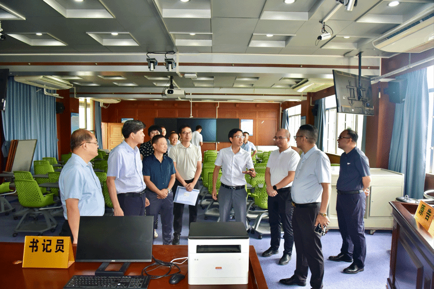 本网讯 8月21日,肇庆市“谁执法谁普法”履职报告评议团一行莅临我校开展实地调研。评议团由市人大代表、政协委员、行业代表等组成。校党委副书记欧洪湛及学校相关职能部门负责人陪同调研。