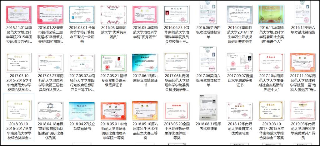 图:参加科研、比赛、英语和计算机考试等的各种证书
