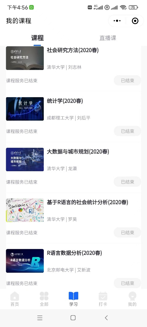 参加校外慕课也是提升自我的一个重要途径。以前,我常用的网上慕课平台有学堂在线和中国大学慕课。这两个慕课平台都是免费向公众开放的,里面涵盖了很多一流院校的网络课程。还记得我在写毕业论文的时候,由于我的统计学基础不深,为了赶上导师要求的进度,我就到学堂在线刷各种统计学的慕课,包括统计学基础,统计软件R、Stata等的应用。新的知识是需要我们主动去学习的,当我们有了主动性和自觉性,而不是被动地等老师布置学习任务,我们才会有更大的收获。
