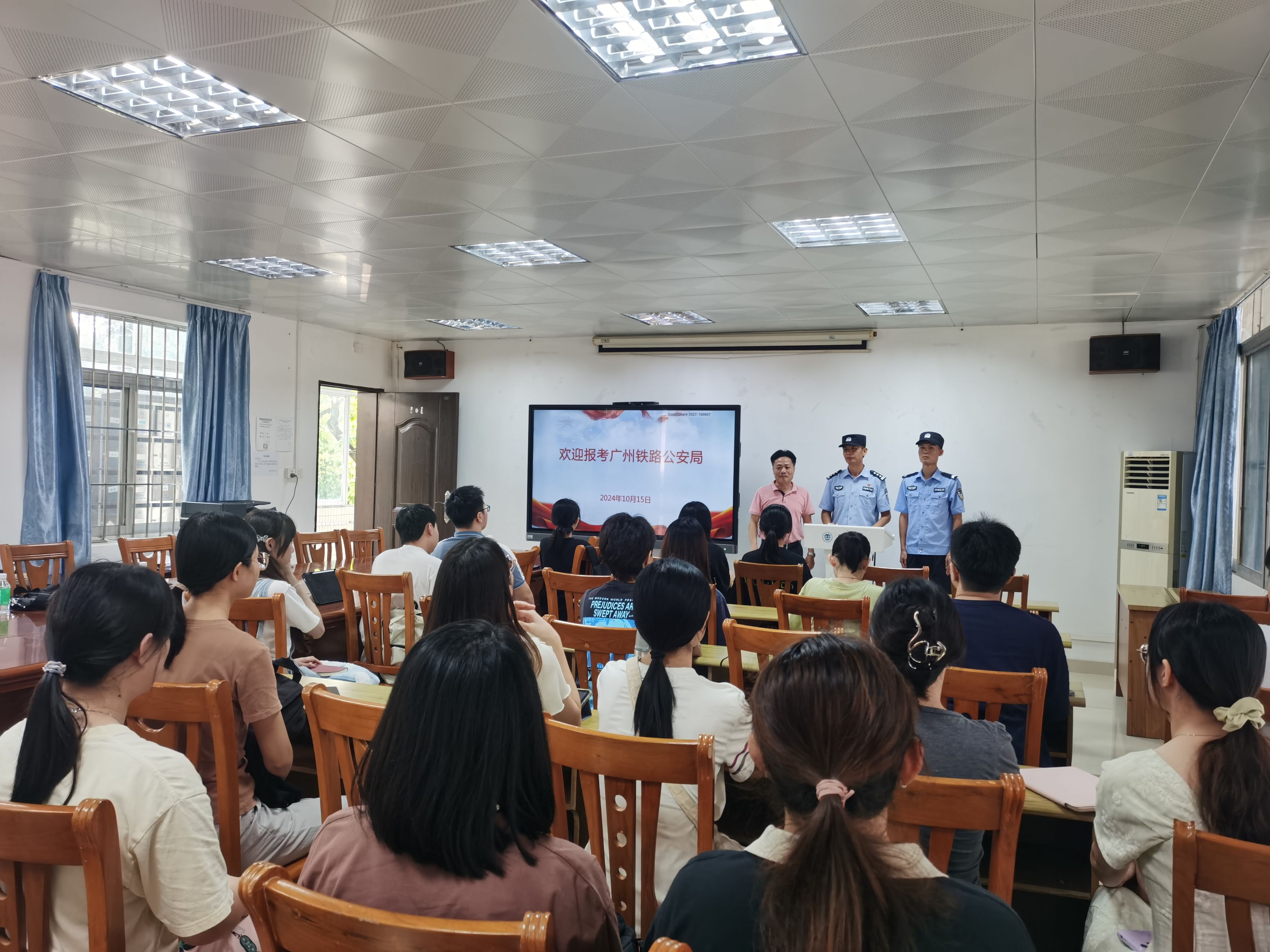 广州铁路公安局肇庆铁路派出所指导员江均进详细介绍了铁路公安的职责范围、工作内容以及公务员招录流程。同时,他们还通过宣传片分享了铁路公安工作的日常点滴,让在场的学生对铁路公安工作有了更加直观和深入的了解。与会毕业生踊跃提问,就考试准备、职业发展、工作挑战等方面与公安代表进行了深入交流。