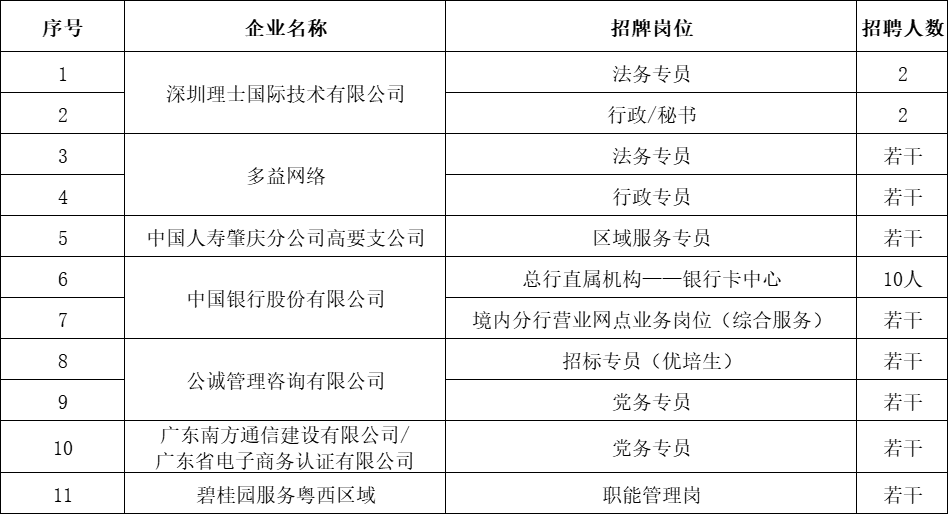 信息来源:广东省人力资源和社会保障厅、肇庆市人力资源和社会保障局、TapTap点点就业指导中心、各类企业官网、各类招聘平台等
