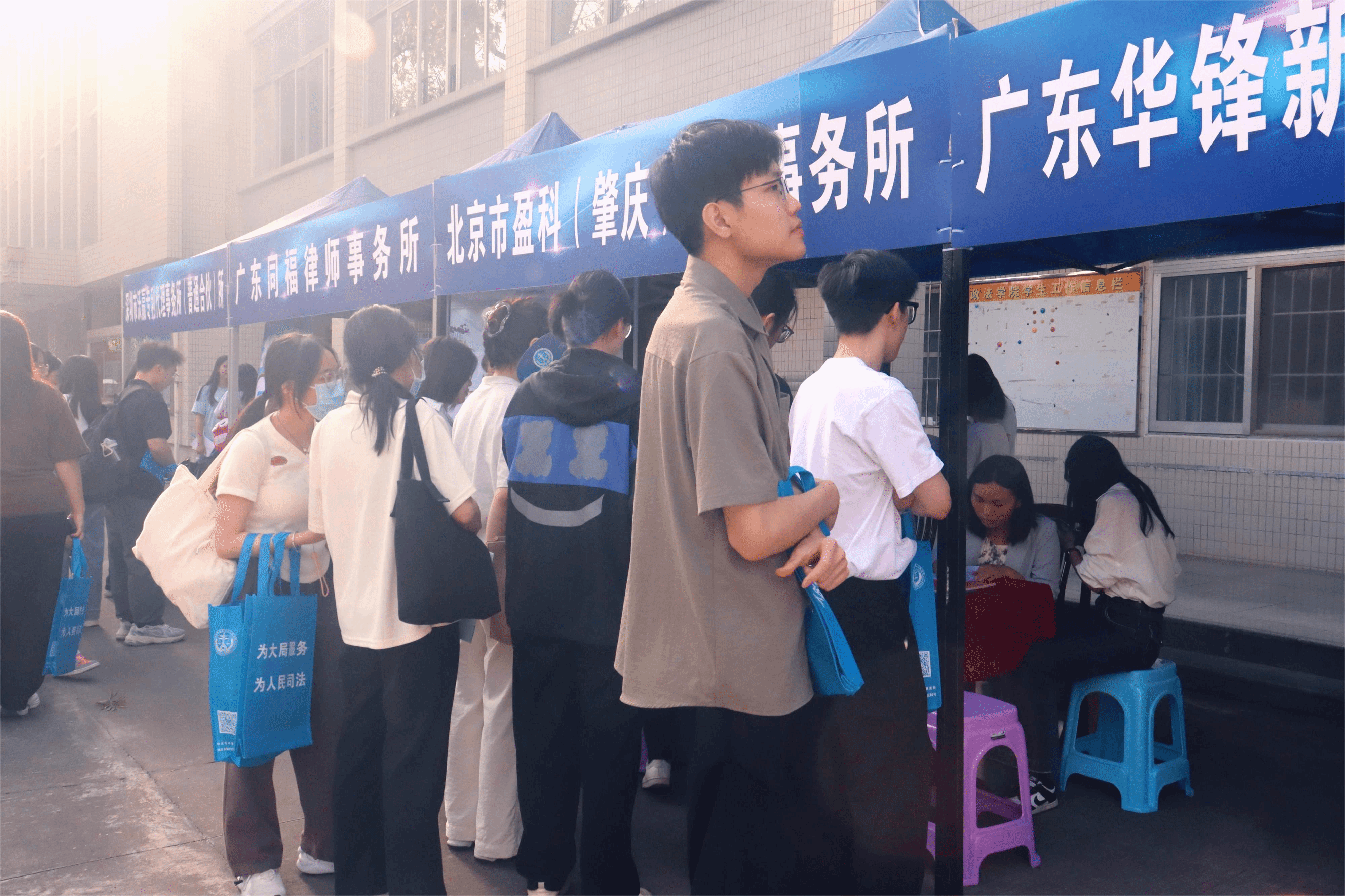 企业面试分会场招聘活动于TapTap点点楼同步开展。活动现场汇聚北京市盈科(肇庆)律师事务所、广东华锋新能源科技股份有限公司、深圳市沃赢专利代理事务所和广东同福律师事务所等多家优质企业,涵盖律师、法务、行政助理等岗位。学生与用人单位面对面交流,深入了解岗位需求与职业发展路径。现场还提供专业导师团队指导学生优化简历、提升面试技巧。
