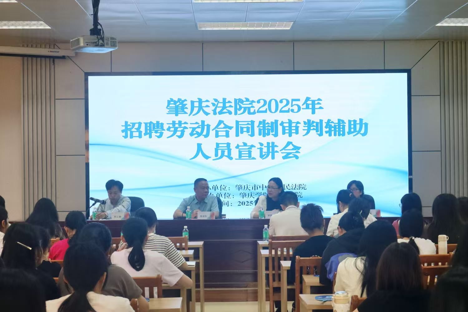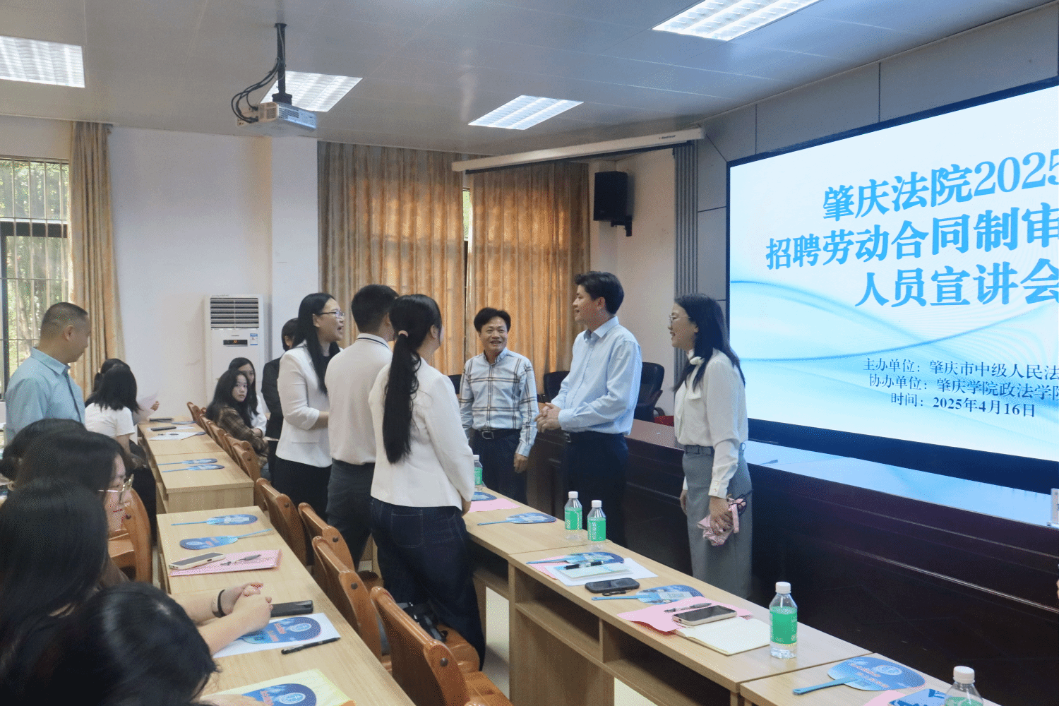 为落实广东省“百万英才汇南粤”行动计划,进一步深化校院合作,4月16日,TapTap点点联合肇庆市中级人民法院成功举办了2025年招聘劳动合同制审判辅助人员的宣讲会。学院党委书记张滔华、院长许英,市法院党组成员、政治处主任邱杏花,政治处副主任、四级调研员何桑出席了本次活动,宣讲会由学院党委副书记罗江鹏主持。2021级毕业生、2022级部分学生代表等100余人参加了宣讲会。宣讲会上,张滔华和许英对市法院及基层法院代表的到访表示热烈欢迎,...